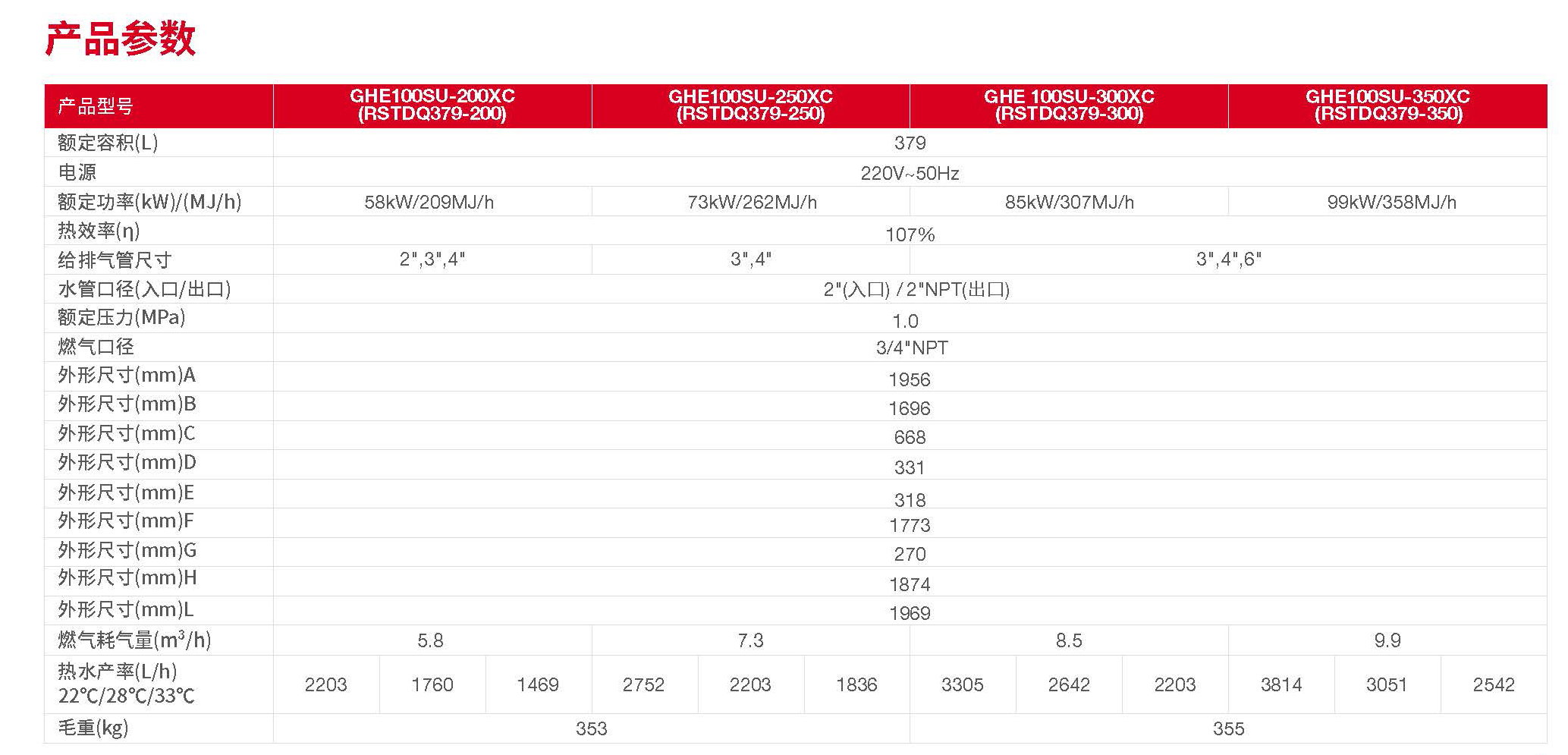 品牌:RHEEM 瑞美型号:GHE室内型容积:379L功率:58KW 73KW 85KW 99KW 热效率:≥107%